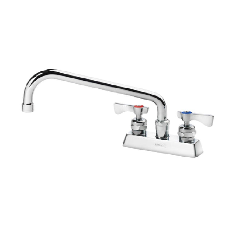 The Krowne 15-310L Krowne Royal Series Faucet - deck mount - 4" centers - is a precision-engineered fixture designed for both reliability and efficiency in diverse commercial settings. Featuring a 10" swing spout, it ensures flexibility and convenience in water delivery for varied tasks. The integration of a 1/4 turn ceramic cartridge valve offers superior durability and smooth operation, minimizing wear over time. This faucet is low lead compliant, meeting stringent safety standards for safe water use, and carries the NSF certification, guaranteeing its adherence to public health and safety guidelines. To protect against any potential backflow and cross-contamination, the faucet includes internal check valves, a vital feature for maintaining water quality in busy environments. With its robust construction and thoughtful features, the Krowne 15-310L is a versatile choice, ideal for restaurants, bars, and other food service operations seeking a dependable and efficient water delivery solution.