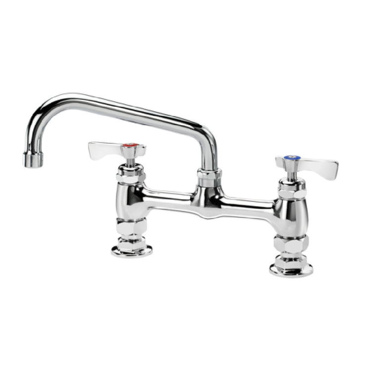 The Krowne 15-808L-W-E4 Royal Series 8" Raised Deck Mount Faucet With 8" Swing Spout exemplifies advanced design and functionality tailored for various industry segments. This faucet features an 8-inch raised deck mount design, providing a higher installation point beneficial for numerous commercial environments, including restaurants and institutional kitchens. At the core of its design is the 8-inch swing spout, which allows for enhanced reach and flexibility, supporting diverse washing and filling needs. The faucet is equipped with vandal-resistant wristblade handles, ensuring durability and ease of use, especially in high-traffic areas. Its 1.5 GPM aerator optimizes water flow, balancing conservation with performance, which is crucial for businesses aiming for sustainability without compromising on utility. Designed with reliability in mind, the Krowne 15-808L-W-E4 is a fixture that combines practical engineering and robust construction, making it a preferred choice for professionals seeking efficiency and longevity in commercial kitchen settings. Its thoughtful features make it a valuable asset, meeting the rigorous demands of various market segments, from hospitality to healthcare, where precision and resilience are paramount. This faucet stands as a testament to Krowne’s commitment to quality and innovation in plumbing solutions.
