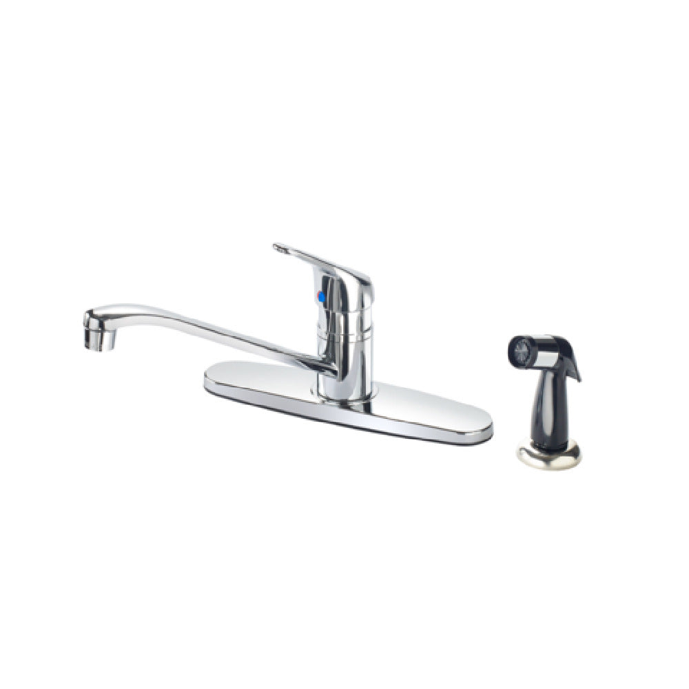The Krowne 16-350L Krowne Royal Series Faucet Deck Mount 8" Centers is a high-performance kitchen faucet designed for both functionality and aesthetic appeal. Engineered with swing spout technology, this faucet delivers a flow rate of 1.8 gallons per minute, thanks to its efficient aerator that ensures a steady stream of water. Its solid chrome-plated brass body not only adds to the durability but also enhances the visual appeal with a decorative chrome base plate. The faucet features a single lever for easy and precise control over water temperature and flow, while the ceramic cartridge valve with a metal stem offers increased durability, ensuring longevity even in demanding environments. Installation is simplified with pre-installed water lines, equipped with 3/8" compression female inlets, making setup efficient and hassle-free. The Krowne 16-350L is NSF certified, highlighting its adherence to public health and safety standards. This deck-mounted faucet is an ideal choice for commercial kitchens, restaurants, or any food service establishment looking for a reliable, stylish, and efficient water fixture. Its thoughtful design and robust construction make it suitable for varied market segments, emphasizing both performance and aesthetic integration in professional kitchen environments.