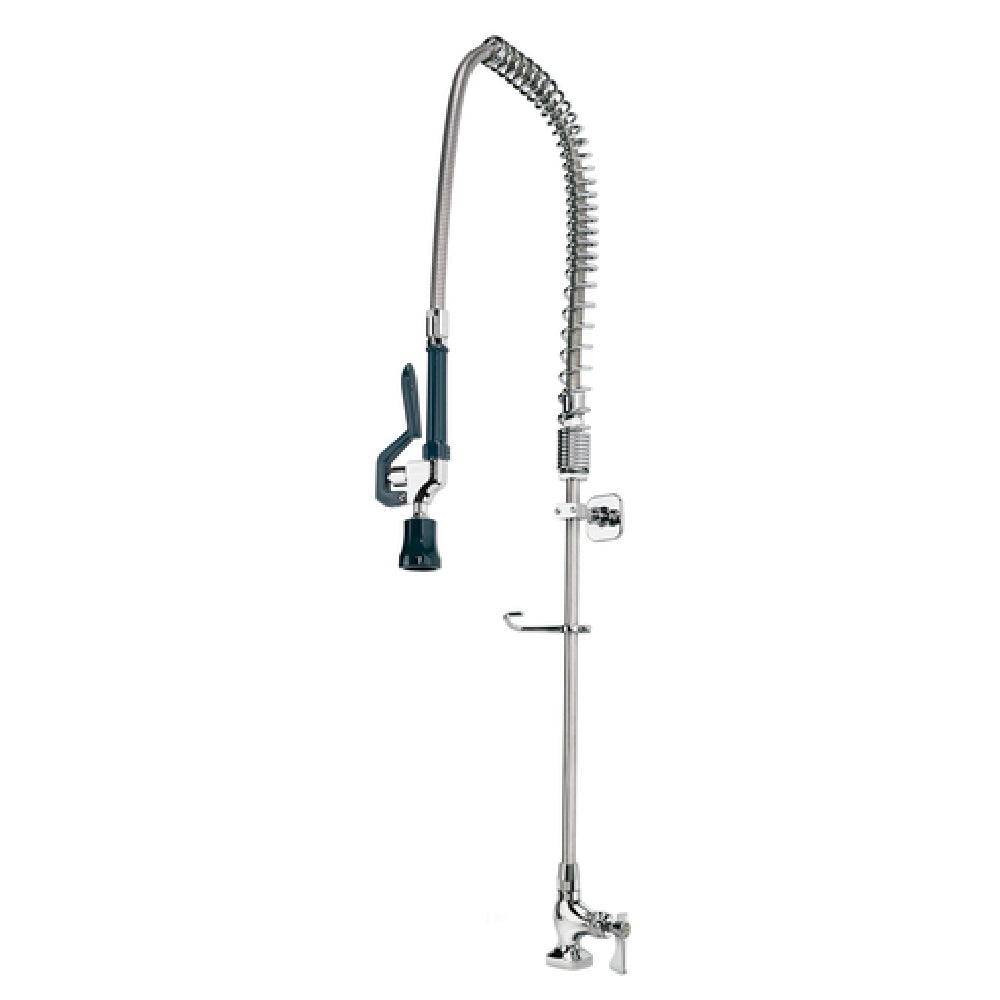 The Krowne 17-206WL Krowne Royal Series Pre-Rinse Assembly Single Hole Deck Mount is a meticulously engineered solution designed to meet the rigorous demands of commercial kitchens. This pre-assembled unit boasts a single hole deck mount configuration, ensuring seamless installation and integration into existing setups. Central to its functionality are the 1/4 turn ceramic cartridge valves, which offer precise control and durability, minimizing the need for frequent maintenance. The assembly includes a wall bracket for enhanced stability and versatility in mounting options. Its 1.2 GPM spray head delivers efficient water usage without compromising performance, making it ideal for high-volume environments. Standing at 38 inches high with a 15-inch overhang, the pre-rinse assembly provides ample reach and clearance for various sink sizes and applications. Built-in check valves offer an additional layer of protection by preventing backflow, which is essential for maintaining water quality standards. The chrome-plated brass base not only ensures a sleek, professional appearance but also adds to the unit's overall durability. Tailored for the dynamic needs of restaurants, cafeterias, and industrial kitchens, the Krowne 17-206WL stands out as a reliable and efficient choice within the industry.
