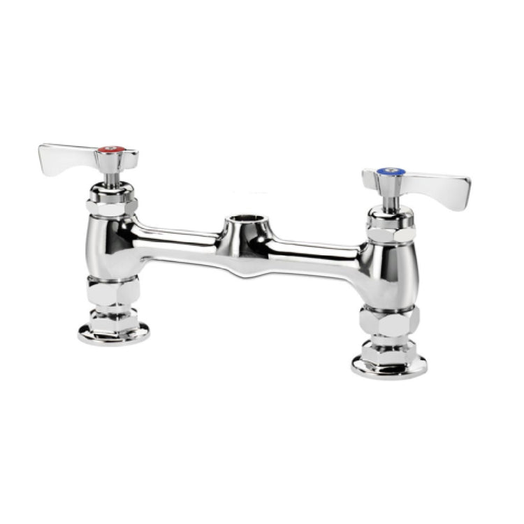 The Krowne 21-208L Krowne Royal Series Deck Base 8" Center Low Lead Compliant is a sophisticated fixture designed for environments where safety and compliance are paramount. With its 8-inch center, this deck base embodies precision engineering and adherence to rigorous standards, making it an ideal choice for industries requiring stringent quality control. A standout feature is its low lead compliance, which ensures that the product meets health and safety regulations, safeguarding users and the environment from harmful contaminants. Additionally, this deck base is equipped with internal check valves, a critical innovation that prevents backflow and cross-contamination, thereby maintaining the integrity of water systems. These technical specifications make it highly suitable for food service establishments, health care facilities, and other sectors where hygiene and reliability are non-negotiable. The Krowne Royal Series Deck Base underscores the brand's commitment to excellence, offering a blend of durability and advanced functionality. Its robust construction and compliance features provide peace of mind, ensuring that operational standards are met effectively. This makes it a valuable asset for any professional setting demanding high-performance and dependable plumbing solutions.
