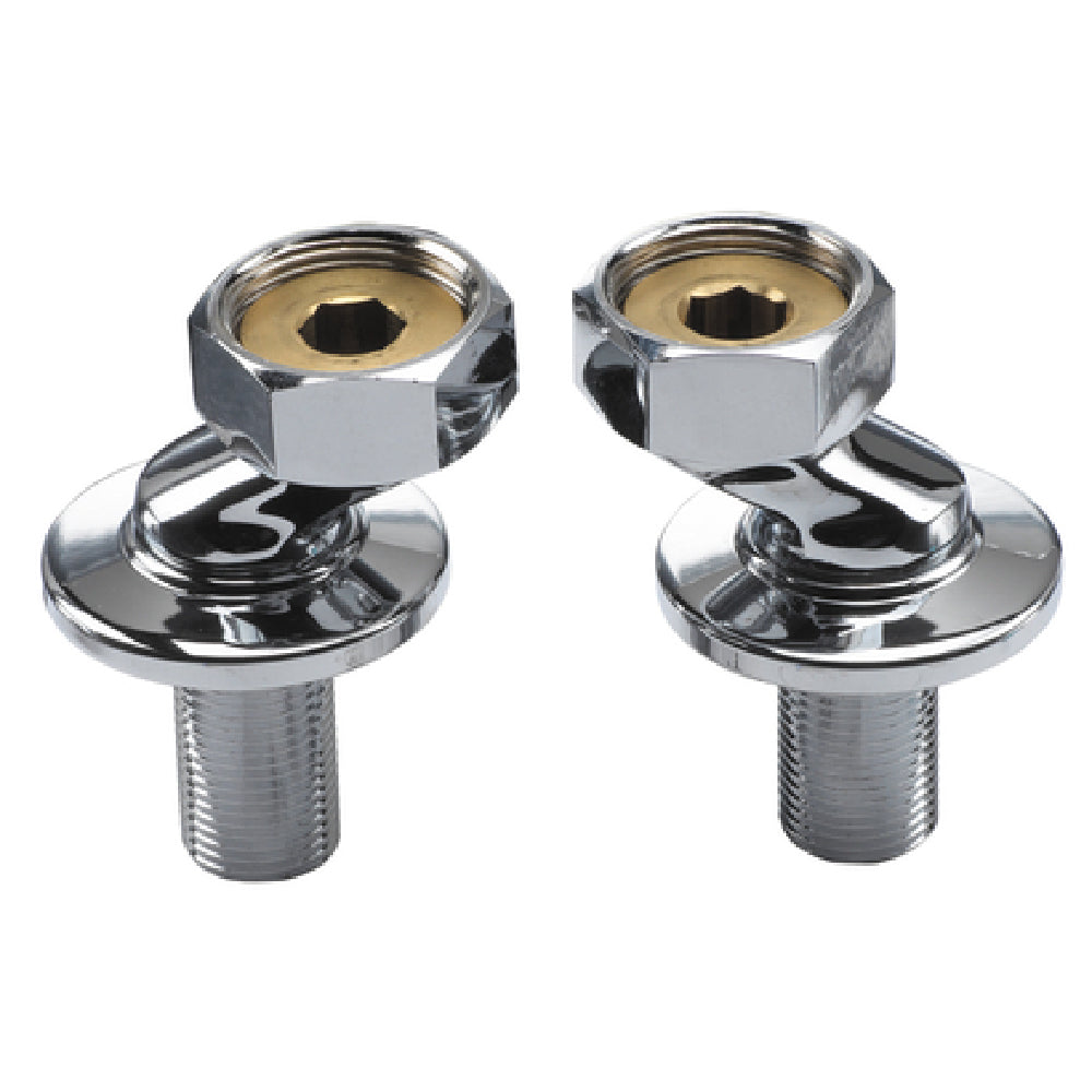 The Krowne 21-402L Krowne Royal Series Medium Adjustable Supply Inlets - (2) pieces, are meticulously engineered to provide flexible and efficient water supply solutions for various commercial plumbing applications. These supply inlets feature a 1-inch total range, ensuring precise fitting adaptability within plumbing systems. Each inlet is equipped with a 1/2-inch NPT female connection, which is a standard fitting size, ensuring compatibility and ease of installation with most existing plumbing infrastructures. The adjustable centers offer customizable installation options, accommodating different spacing requirements to suit diverse project specifications. Notably, these inlets are low lead compliant, aligning with health and safety standards, and are interchangeable with most brands, reflecting their versatile applicability across the industry. This makes them ideal for businesses and professionals seeking reliable and compliant plumbing solutions without compromising on flexibility or compatibility. Whether you are upgrading a commercial kitchen, retrofitting a hospitality facility, or constructing a new installation, the Krowne 21-402L inlets stand out as a versatile solution engineered to meet the rigorous demands of the industry.