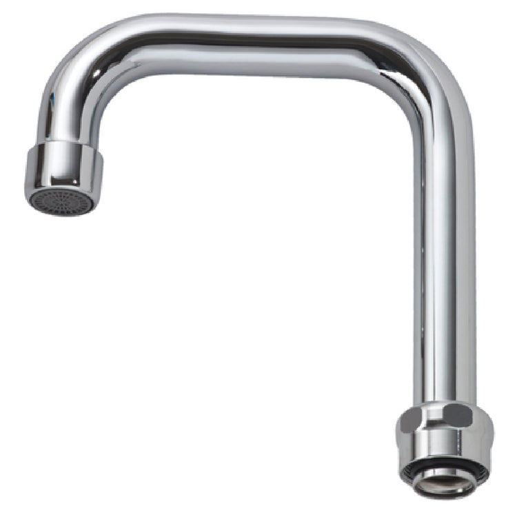 The Krowne 21-430L Royal Series Spout is a meticulously designed fixture, featuring a 4-1/2" width and a 6" height double bend spout, crafted to enhance both functionality and elegance in commercial settings. This spout, part of the renowned Royal Series, is engineered to meet the demanding requirements of various industries, including hospitality and food service. Its unique double bend design not only adds an aesthetic appeal but also ensures precise water flow control, making it an ideal choice for environments where efficiency and performance are paramount. The Krowne 21-430L is constructed with high-quality materials that ensure durability and long-lasting performance, even under rigorous usage. The dimensions of the spout are optimized to provide maximum reach and coverage, suitable for a wide range of sink configurations. This product's seamless integration into existing systems makes it a versatile solution for establishments looking to upgrade or maintain their facilities with reliable and stylish components. The Royal Series by Krowne is synonymous with superior craftsmanship, and the 21-430L spout stands as a testament to their commitment to quality and innovation in plumbing fixtures.