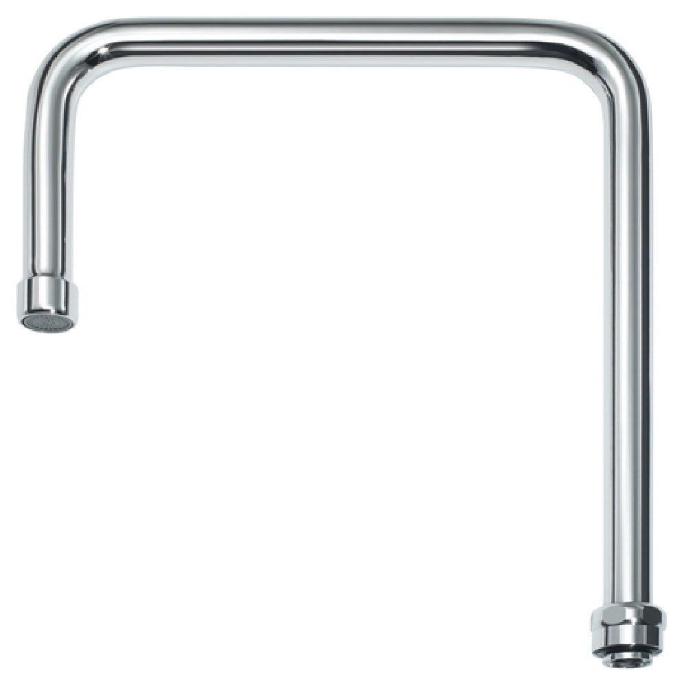 The Krowne 21-432L Royal Series Spout is an expertly designed plumbing fixture that stands out with its precise measurements of 8-1/2"W x 11"H, featuring a distinctive double bend spout configuration. This specific design ensures optimal water flow and is particularly tailored for professional environments where reliability and performance are crucial. The double bend structure serves to enhance the spout's reach and flexibility, making it a versatile choice for various commercial applications, such as restaurants, bars, and catering services, where efficient water delivery is essential. The Krowne Royal Series is renowned for its robust construction and attention to detail, ensuring durability and lasting performance in high-demand settings. This product is crafted to meet the rigorous standards of the food and beverage industry, providing a reliable solution that facilitates seamless operations. Its unique specifications make it an excellent choice for businesses looking to maintain high standards of functionality and efficiency. Whether used in a bustling restaurant kitchen or a busy bar setting, the Krowne 21-432L Royal Series Spout delivers exceptional value, combining technical precision with superior craftsmanship that supports a wide range of professional needs.