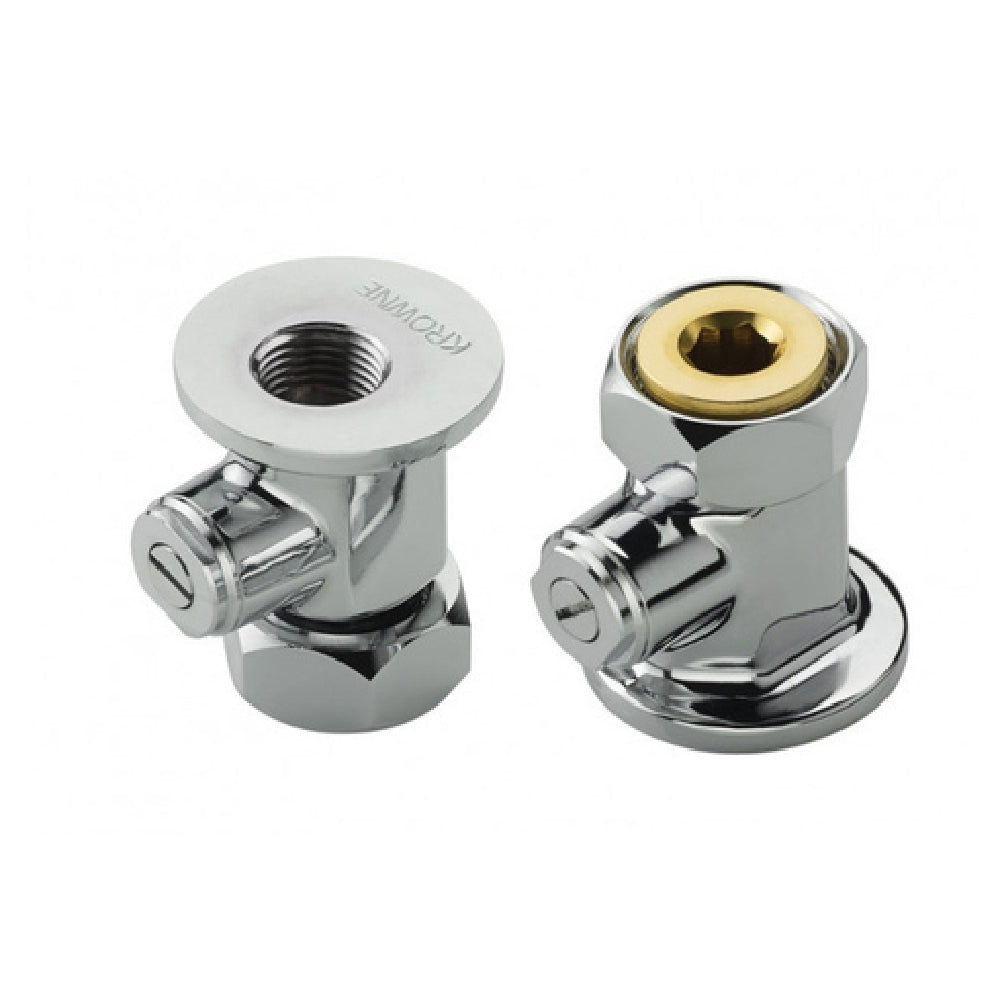The Krowne 21-452L Heavy Duty Coupling Flanges with built-in shut-off valves and adjustable centers are a versatile and robust solution for plumbing installations in commercial kitchens and other similar environments. Featuring a 1/2" NPT female inlet, these coupling flanges ensure a secure and reliable connection to various plumbing systems. The inclusion of built-in shut-off valves provides an added layer of convenience, allowing for easy control of water flow without the need for additional components. Notably, the adjustable centers make these coupling flanges adaptable to different installation requirements, enhancing their versatility across multiple faucet configurations. Designed to be compatible with all Royal Series faucets, they also offer interchangeability with most other brands, ensuring wide-ranging applicability across different setups. The package includes two rubber washers, contributing to a secure, leak-proof installation, crucial for maintaining operational efficiency and minimizing downtime. The Krowne 21-452L is an excellent choice for professionals in the hospitality and food service industries, where durability and adaptability are paramount, providing a reliable solution that meets diverse plumbing needs with its thoughtfully engineered features.