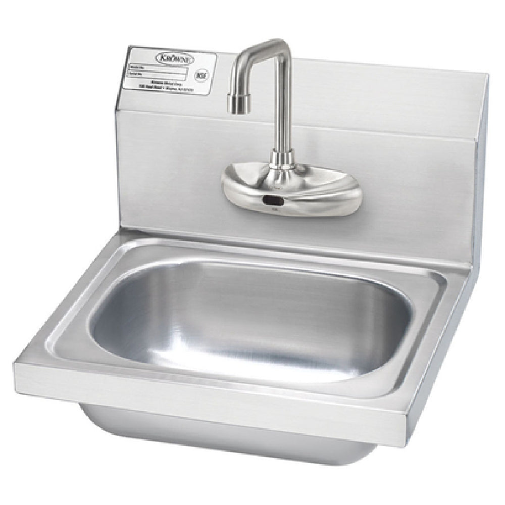The Krowne HS-67 Hand Sink Wall Mount is a compact and efficient solution for commercial spaces requiring stringent hygiene standards. Measuring 12-1/2 inches in width, 9-3/4 inches in depth, and featuring a 5-5/8 inch deep bowl, this hand sink is designed for optimal use of space while ensuring functionality. The inclusion of a 4-inch OC electronic faucet with a 4-1/2 inch double bend spout emphasizes its modern appeal and reliability. This model comes with a control module, mechanical mixing valve, and supply hose to ensure smooth operation and user convenience. Crafted from 20-gauge stainless steel, it promises durability and longevity, making it a wise investment for high-demand environments. This hand sink is NSF, cCSAus, and ADA compliant, attesting to its adherence to industry standards for safety, performance, and accessibility. Whether for kitchens, laboratories, or healthcare facilities, the Krowne HS-67 Hand Sink Wall Mount is a versatile and compliant addition, tailored to meet diverse industry requirements efficiently.