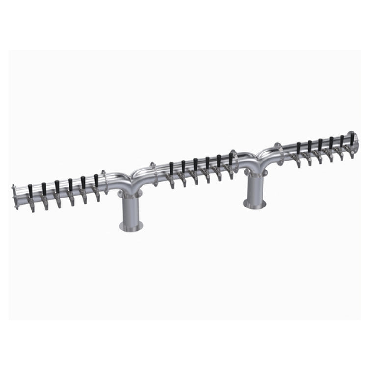 The Krowne KDPY-18S Krowne Double Pipe Y-Tower is a specialized dispensing system featuring an impressive eighteen-faucet configuration, making it a versatile asset for large-scale beverage service operations. With an overall length of 87 inches, this Y-tower design is notably glycol cooled, ensuring consistent temperature regulation for optimal beverage delivery. Crafted from brushed stainless steel, the tower combines durability with a sleek aesthetic, suitable for high-end bar settings or commercial hospitality environments. It's important to note that this product does not include handles and faucets, allowing establishments the flexibility to customize according to their specific needs and preferences. The Krowne KDPY-18S is particularly suited for operations requiring a robust and expansive dispensing system, such as busy bars, breweries, and large-event venues, where efficiency and volume handling are crucial. By offering a stainless steel finish, this tower promises not only resilience against frequent use and cleaning but also a timeless appearance that complements a variety of interior styles. Its glycol cooling feature is a standout attribute, essential for maintaining beverage quality across numerous taps, making it a strategic investment for businesses prioritizing both performance and presentation in their beverage service offerings.