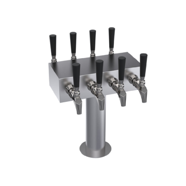 The Krowne KDSTC-4S Krowne Double Sided T-Head Tower is a versatile and robust solution designed for a variety of commercial applications, with an overall length of 12 inches. This innovative tower supports up to eight faucets, although it's important to note that handles and faucets are not included, offering the flexibility for customized installation based on specific needs. Engineered with a glycol cooling system, this tower ensures consistently optimal temperature control, which is particularly beneficial in maintaining beverage quality. Its brushed stainless steel finish not only provides a sleek, modern aesthetic but also offers durability and ease of cleaning, making it ideal for high-traffic environments. The Krowne KDSTC-4S is particularly advantageous in segments of the hospitality and food service industries where efficiency and hygiene are paramount. Its double-sided design allows for increased service capacity, facilitating swift and effective customer service. This tower is an excellent choice for establishments looking to enhance their beverage dispensing capabilities with a reliable and visually appealing installation. The absence of included handles and faucets allows businesses to tailor their purchase to align with brand identity or operational requirements, maximizing the infrastructure's adaptability.