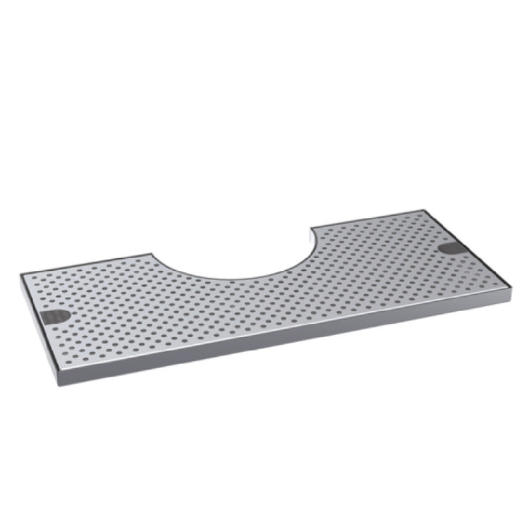 The Krowne KDT-10X21S Drip Tray 21"W x 10"D with Notch to Sit Flush with Tower is a meticulously crafted piece engineered for the food and beverage industry, offering a streamlined solution for maintaining cleanliness and efficiency in service areas. Measuring 21 inches in width and 10 inches in depth, this drip tray is designed to integrate seamlessly with beverage towers, thanks to its unique notch feature that allows it to sit flush against the tower base. Constructed from brushed stainless steel, the Krowne KDT-10X21S combines durability with a sleek, professional appearance, making it an ideal choice for both high-volume commercial environments and boutique establishments. The durable material and precise design ensure longevity and robustness in demanding conditions, while its aesthetic appeal complements the modern ambiance of any bar or restaurant. This drip tray is not only practical but also enhances operational efficiency by effectively collecting excess liquids, thus minimizing mess and reducing cleanup time. Its thoughtful design caters to a wide range of industry needs, providing exceptional value for businesses looking to maintain a high standard of hygiene and presentation.