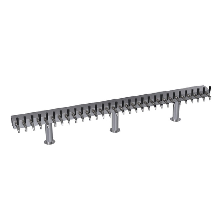 The Krowne KDTH-30S Krowne Double T-Head Tower is a remarkable piece designed for maximizing efficiency and functionality in commercial settings. This tower is specially crafted with a brushed stainless steel finish, ensuring durability and a sleek aesthetic. It is engineered to accommodate up to thirty faucets, making it a prime choice for large-scale operations that demand high-volume service capabilities. Although handles and faucets are not included, this allows for customizable selections tailored to specific needs. Spanning 90 inches in length, the double T-head tower provides ample space and flexibility for installation. A standout feature is its glycol cooled system, which is instrumental in maintaining optimal temperature control for beverage dispensing. This feature is particularly beneficial for venues that prioritize serving beverages at precise temperatures, enhancing customer satisfaction. The Krowne KDTH-30S is ideal for environments such as bars, restaurants, and event venues that require a reliable, efficient, and adaptable beverage dispensing solution. Its robust construction and thoughtful design ensure it can withstand the demands of high-paced commercial use, making it a valuable asset in the food and beverage industry. The Krowne Double T-Head Tower exemplifies a blend of functionality and adaptability, catering to diverse operational requirements.