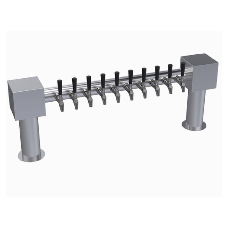 The Krowne KHH-10S Krowne Hammer Head Tower is a professional-grade dispensing unit designed for establishments that require a high-capacity draft beer system. This model features ten faucets, making it suitable for bars and restaurants with high demand for a diverse selection of beers on tap. The handles and faucets themselves are not included, which allows for customization based on specific operational needs or aesthetic preferences. With an overall length of 45-1/2 inches, the tower provides ample space for installation and integration into existing bar setups. The glycol-cooled functionality ensures that beverages are served at optimal temperatures, maintaining quality and freshness from the keg to the glass. Constructed from brushed stainless steel, the Krowne KHH-10S presents a sleek, modern appearance that enhances any professional setting while ensuring durability and resistance to corrosion. This product is specifically designed to meet the diverse needs of the hospitality industry, offering reliability and efficiency in high-volume environments. The combination of its robust capacity, customizable features, and efficient cooling system make it an excellent investment for any establishment looking to expand or upgrade its draft dispensing capabilities with a focus on quality and performance.