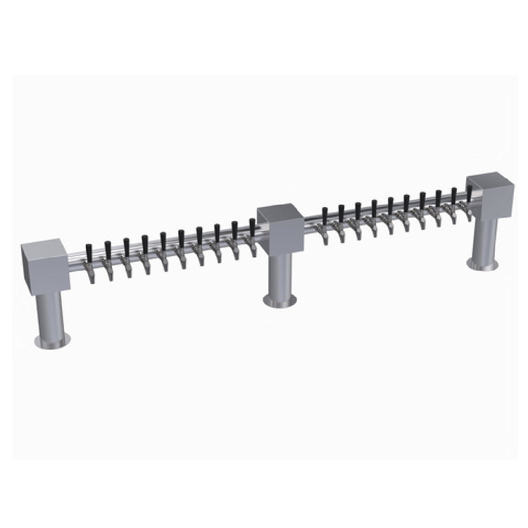 The Krowne KHH-20S Krowne Hammer Head Tower is an impressive bar and beverage dispensing system designed for high-volume commercial use, featuring a remarkable twenty faucet capacity. With an overall length of 83-3/4 inches, this tower stands out as a versatile solution for establishments looking to maximize their beverage dispensing capabilities. While handles and faucets are not included, this allows for customization to meet specific operational needs. The tower boasts a glycol cooling system to maintain optimal beverage temperatures, ensuring a refreshing pour every time. Constructed with a brushed stainless steel finish, the KHH-20S exudes durability and style, making it a sophisticated addition to any bar setup. This product’s robust design and substantial capacity make it especially suitable for large bars, breweries, and event venues that require efficient and reliable beverage service. Its stainless steel construction also provides ease of maintenance and a long-lasting performance. Whether for busy nightlife establishments or expansive event spaces, the Krowne Hammer Head Tower offers unmatched adaptability and efficiency, setting a high standard for beverage dispensing systems in the industry.