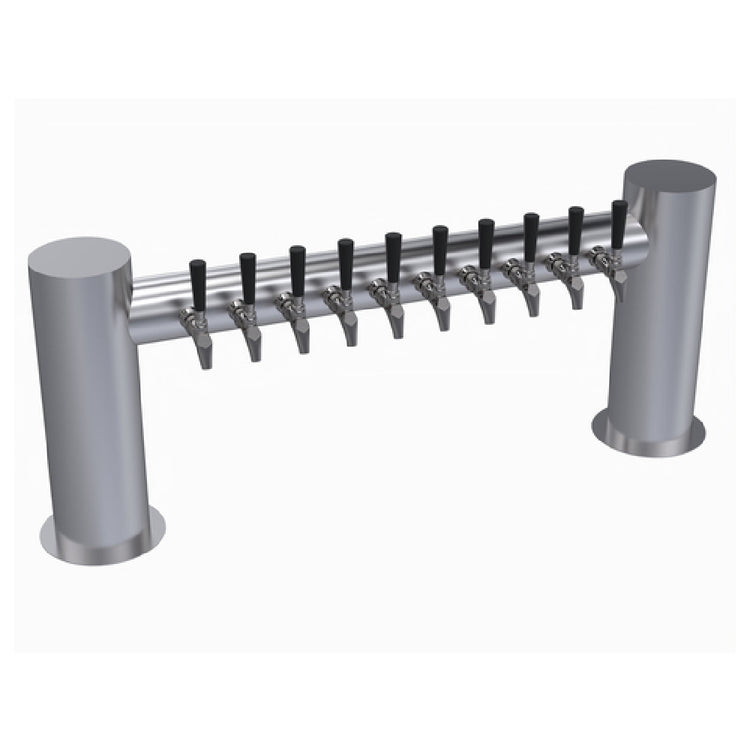 The Krowne KMH-10S Krowne Max-H Style Tower is an expertly crafted dispensing tower designed for commercial beverage systems, featuring ten faucet positions. This robust unit is fabricated from brushed stainless steel, providing both durability and a sleek aesthetic suitable for high-end establishments. The tower spans 47 inches from the outside flange to outside flange, offering ample space for various beverage dispensing setups. While handles and faucets are not included, this design allows for customization to fit specific needs and preferences. The glycol-cooled technology is integrated to maintain optimal beverage temperatures, enhancing the consumer experience by ensuring drinks are served at ideal conditions. This feature is particularly valuable for segments of the market such as bars, restaurants, and breweries that require reliable and efficient beverage dispensing systems. The Krowne KMH-10S tower stands out as a versatile and customizable component for any professional beverage service environment, providing high-capacity service with its ten-faucet design while maintaining a focus on temperature control and aesthetic appeal. This tower is an essential addition to settings seeking to elevate their beverage service capabilities with a product that balances form, function, and flexibility, appealing to a wide array of market segments within the hospitality industry.
