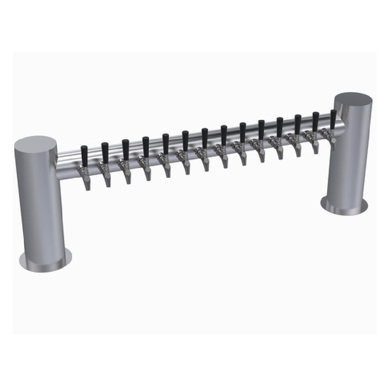 The Krowne KMH-14S Krowne Max-H Style Tower is a sophisticated and versatile addition to any establishment requiring a glycol-cooled draft beer system. With a brushed stainless steel finish, this tower provides both durability and an appealing aesthetic suitable for high-end bars and restaurants. Spanning an impressive 59 inches from outside flange to outside flange, it is designed to accommodate fourteen faucets, allowing for a wide selection of beverages to be served simultaneously. It's important to note that handles and faucets are not included, which offers flexibility for customization based on specific needs and preferences. The glycol cooling mechanism ensures beverages are delivered at optimal temperatures, maintaining quality and satisfaction for patrons. This tower's design supports the efficient and organized dispensing of beverages, making it an excellent choice for venues with diverse offerings. By focusing on high-quality materials and precise engineering, the Krowne KMH-14S ensures longevity and a professional appearance, meeting the demanding standards of any large-scale beverage service operation.