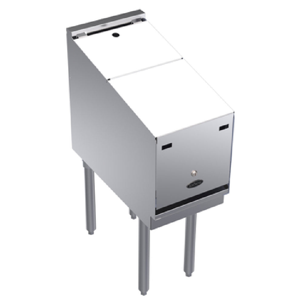 The Krowne KR24-12RD-LC Royal Series Underbar Liquor Bottle Display Unit with Removable Locking Cover sets itself apart as a versatile and practical solution for the hospitality industry. This freestanding display unit, designed to match speedrail depth, measures 12 inches in width and 24 inches in depth, offering ample space to hold up to 12 liquor bottles securely. Its design features four bottle steps equipped with guard rails, ensuring the safe and organized display of bottles. The unit is constructed with a stainless steel top, front, and sides, complemented by a galvanized steel back and bottom, ensuring durability and longevity in demanding environments. Stainless steel legs with adjustable thermoplastic bullet feet provide stability and versatility, allowing for adjustments to fit various underbar settings. The unit also includes a removable locking cover, adding an extra layer of security for high-value inventory. Certified by NSF, this liquor display unit adheres to rigorous public health and safety standards, making it a reliable choice for bars, restaurants, and other establishments where beverage display and storage are essential. The Krowne KR24-12RD-LC's robust construction and thoughtful design make it an invaluable asset for efficient underbar management.