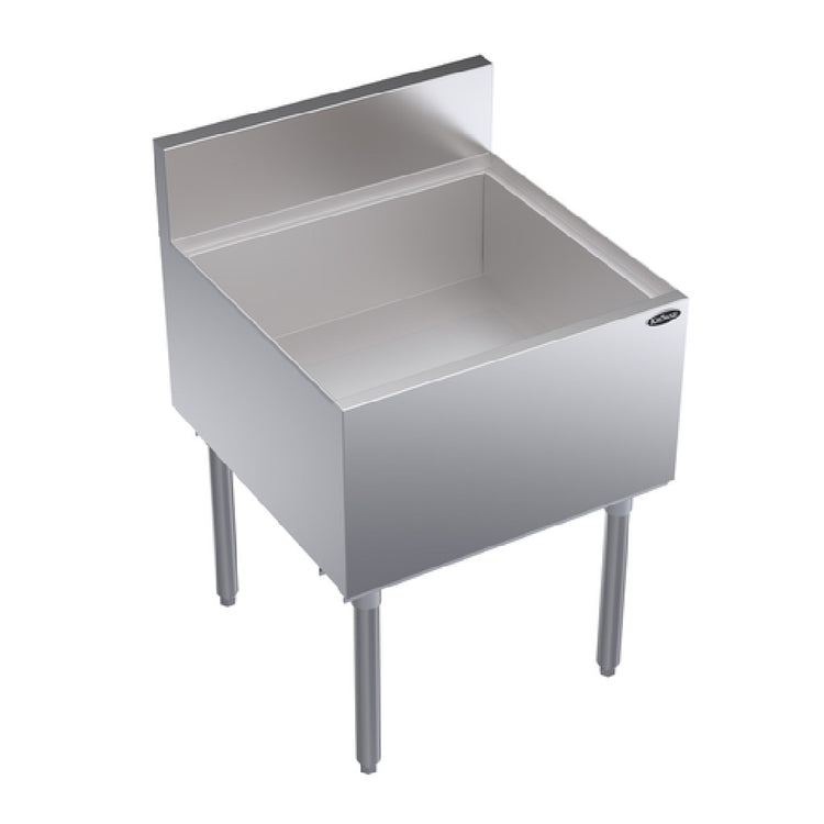 The Krowne KR24-24 Royal Series Underbar Ice Bin/Cocktail Unit is a compact yet robust solution for bars and restaurants, measuring 24"W x 24"D with an overall capacity of 92 lbs. This unit is distinguished by its 12" deep stainless steel bin liner, which ensures durability and easy cleaning. The design incorporates a 1" drain for efficient water management, essential for maintaining hygiene in high-demand environments. The stainless steel construction extends to the top, front, and sides, providing a sleek and professional appearance, while the galvanized steel back and bottom enhance structural integrity. Supporting the unit are sturdy stainless steel legs equipped with adjustable thermoplastic bullet feet, offering stability and adaptability on uneven surfaces. This ice bin/cocktail unit is NSF certified, underscoring its compliance with rigorous health and safety standards. The Krowne KR24-24 is ideal for hospitality venues that require a reliable and efficient ice storage solution. Its thoughtful design and quality materials make it suitable for high-traffic establishments that prioritize both performance and aesthetics in their bar setups.