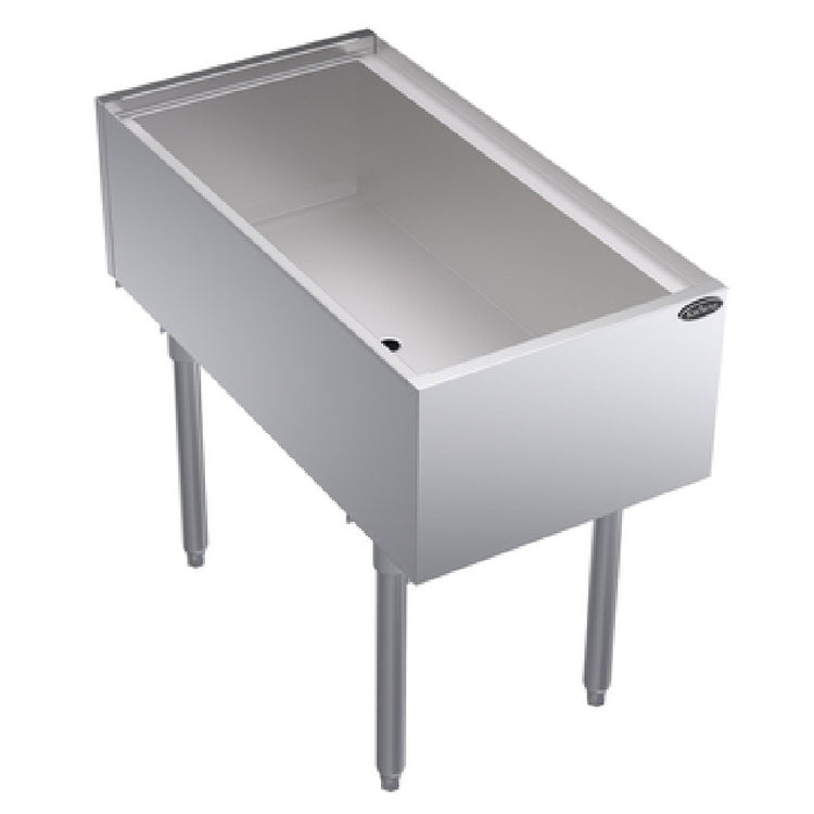 The Krowne KRPT-1836-10 Royal Series Underbar Ice Bin/Cocktail Station - pass-thru 10-circuit cold plate, is a highly efficient piece of equipment designed for commercial bar environments. It features an 18-inch width and 35-inch depth, making it compact yet spacious enough to facilitate smooth bar operations. With an impressive ice capacity of 130 lbs, this station ensures that high-demand settings remain well-supplied, enhancing workflow efficiency. The 10-inch deep liner is complemented by a 1-inch drain, which aids in maintaining cleanliness and operational hygiene. Built with robust stainless steel construction, the product promises durability and ease of maintenance, further enhanced by its stainless steel legs with adjustable plastic bullet feet for stability on uneven surfaces. Certified by NSF, the Krowne KRPT-1836-10 ensures compliance with public health standards, making it a reliable choice for establishments prioritizing safety and quality. The key feature of a 10-circuit cold plate allows for advanced cooling capabilities, supporting a high-traffic cocktail service by keeping drinks chilled effortlessly. This ice bin/cocktail station is ideal for bars, restaurants, and hospitality venues looking to maximize their service efficiency without compromising on quality and compliance standards.