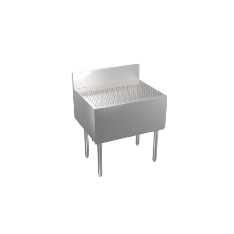 Krowne, KRS-GS30, Stadium Series Underbar Drainboard, free standing, 30"W x 29"D, embossed top with 1" drain, stainless steel construction, stainless steel legs with adjustable bullet feet, 5” deep backsplash return to allow for utilities to be run directly behind equipment, increase equipment overall depth by 5"