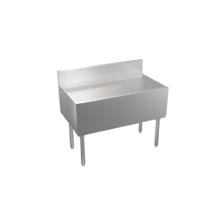 Krowne, KRS-GS42, Stadium Series Underbar Drainboard, free standing, 42"W x 29"D, embossed top with 1" drain, stainless steel construction, stainless steel legs with adjustable bullet feet, 5” deep backsplash return to allow for utilities to be run directly behind equipment, increase equipment overall depth by 5"