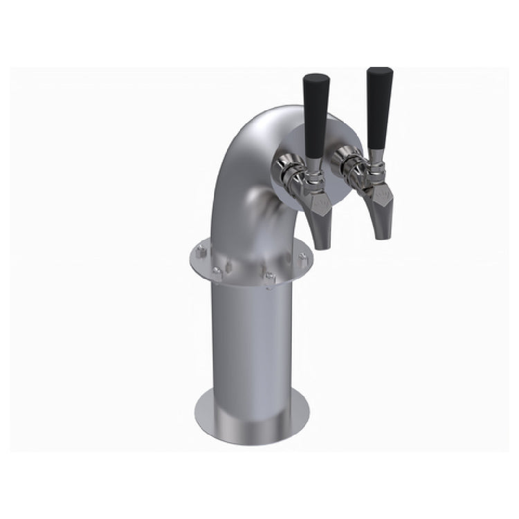 The Krowne KSH-2S Krowne Dual Faucet Snakehead Tower is a sophisticated addition to any bar or beverage service setting, distinguished by its modern brushed stainless steel finish. This dual faucet tower is engineered to accommodate two faucets, although handles and faucets are not included, offering flexibility in customization based on specific user preferences or requirements. A key feature of the KSH-2S is its glycol cooling system, which ensures beverages are consistently chilled, a significant advantage for establishments that prioritize quality and customer satisfaction. This product's design is particularly suited for commercial environments such as bars, restaurants, or breweries that require efficient and reliable beverage dispensing solutions. The brushed stainless steel not only enhances its aesthetic appeal but also provides durability and resistance to corrosion, ensuring longevity in high-volume settings. The Krowne KSH-2S is tailored for industry professionals seeking to optimize their beverage service operations with equipment that emphasizes efficiency and adaptability. By allowing users to integrate their choice of faucets and handles, it offers a customizable solution that can be adapted to various beverage dispensing needs, underscoring its versatility and utility in diverse market segments.