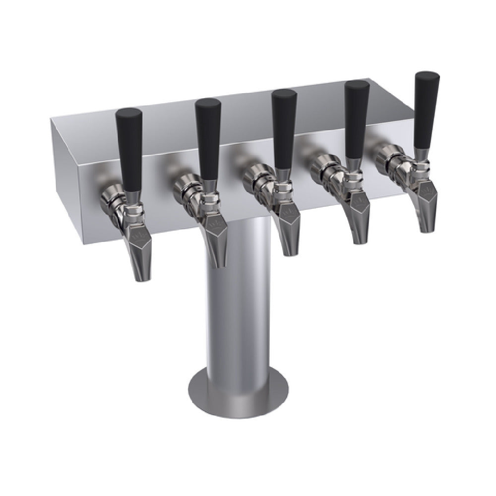 The Krowne KTH-5S Krowne T-Head Tower is a versatile and essential component for bars and beverage service operations, featuring a unique design with five faucet openings that cater to diverse beverage dispensing needs. Measuring 15 inches in length, this tower is constructed from brushed stainless steel, ensuring durability and a sleek, modern appearance that complements any setting. Notably, the Krowne T-Head Tower employs glycol cooling technology, which is integral for maintaining optimal beverage temperatures, a critical feature for establishments that prioritize quality service and product integrity. It's important to note that this model does not include handles or faucets, allowing users the flexibility to customize their setup according to specific operational requirements. The absence of these components offers businesses the opportunity to select their preferred brands or styles, making the Krowne KTH-5S adaptable to various market segments within the hospitality industry. By focusing on enhanced cooling capabilities and a customizable design, this tower addresses the needs of businesses looking for reliable and efficient beverage dispensing solutions, while its robust construction ensures longevity and consistent performance in high-demand environments. The Krowne KTH-5S represents a strategic choice for establishments seeking to enhance their beverage service capabilities.