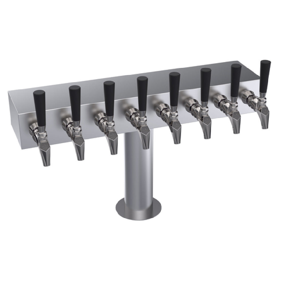 The Krowne KTH-8S Krowne T-Head Tower is a robust installation designed for high-efficiency beverage dispensing systems, featuring eight faucets in a streamlined configuration. Measuring at an impressive 24 inches in length, this tower is glycol cooled, ensuring optimal temperature maintenance for beverages, making it particularly advantageous for establishments prioritizing draft quality. The brushed stainless steel finish not only enhances its durability but also adds a sleek aesthetic appeal suitable for modern bar environments. While handles and faucets are not included, this allows for customization according to specific operational needs. The Krowne KTH-8S serves as a versatile solution across various industry segments, from bustling bars to upscale restaurants, by offering a reliable foundation for customized beverage service solutions. Its technical design and high-quality materials reflect a commitment to performance and longevity, making it a valuable asset in any commercial setting where beverage dispensing is a key operation. The absence of included faucets provides flexibility, enabling establishments to select components that best align with their service protocols and customer preferences. This adaptability underscores the Krowne KTH-8S's unique value proposition, catering to diverse market demands while maintaining a focus on quality and efficiency.