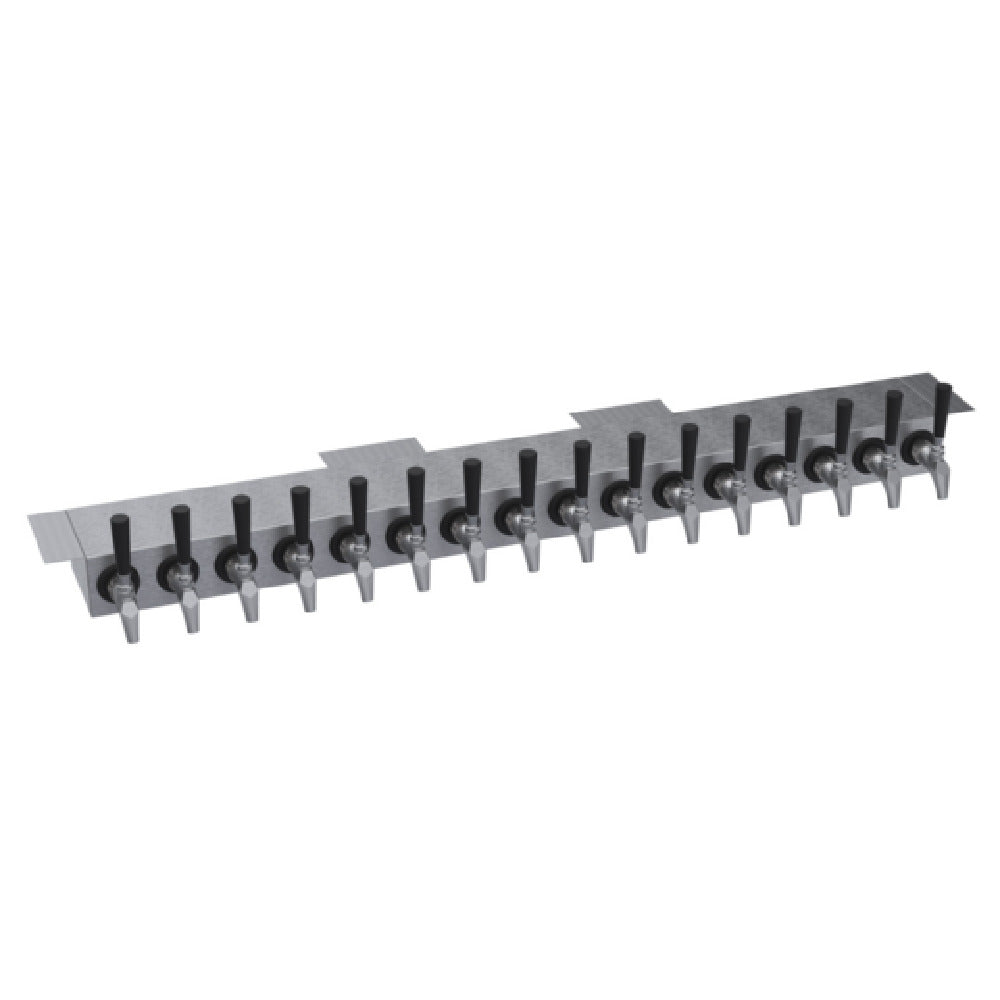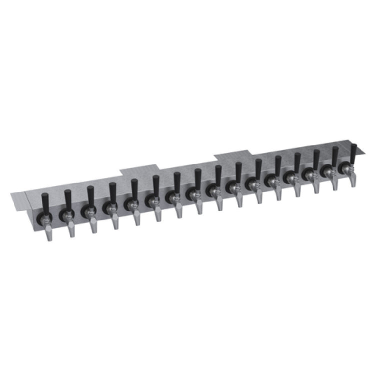 The Krowne KUC-16S Krowne Undercounter Tower is a specialized fixture designed for precision and efficiency in beverage dispensing environments. This model features sixteen faucets, though handles and faucets are not included, allowing for customized outfitting according to specific operational needs. With an overall length of 36 inches, it is carefully constructed to integrate seamlessly into a variety of undercounter spaces, making it ideal for bars, restaurants, and hospitality venues where space optimization is crucial. The glycol-cooled system ensures beverages are maintained at an optimal temperature, enhancing service quality and customer satisfaction. The brushed stainless steel finish not only provides a sleek, modern aesthetic but also ensures durability and ease of maintenance in high-traffic environments. Please note that the hanging tray is sold separately. This allows for further customization and flexibility according to the varying requirements of different service settings. The Krowne KUC-16S is engineered to meet the demands of high-volume service areas, providing a robust solution for establishments aiming to deliver a wide array of beverages with efficiency and style.