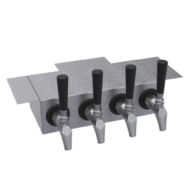 The Krowne KUC-4S Krowne Undercounter Tower is a sophisticated piece of equipment designed for establishments looking to expand their beverage dispensing capabilities. Featuring four faucet positions, this tower allows for a diverse range of beverages to be served simultaneously, although it's important to note that handles and faucets are not included with the unit. It boasts an overall length of 12 inches, making it a compact yet effective addition to any bar setup. Engineered with a glycol cooling system, this tower ensures beverages are served at optimal temperatures consistently. The brushed stainless steel finish not only provides a sleek, modern aesthetic but also offers durability and ease of cleaning, making it a practical choice for high-volume environments. While the hanging tray is sold separately, this undercounter tower integrates seamlessly into existing setups, making it ideal for bars, restaurants, and other hospitality venues. Its robust design caters specifically to industry professionals who demand both functionality and style in their equipment. The Krowne KUC-4S stands out in the market thanks to its combination of compact dimensions, efficient cooling technology, and flexible dispensing capabilities, catering to a wide range of commercial beverage service needs.