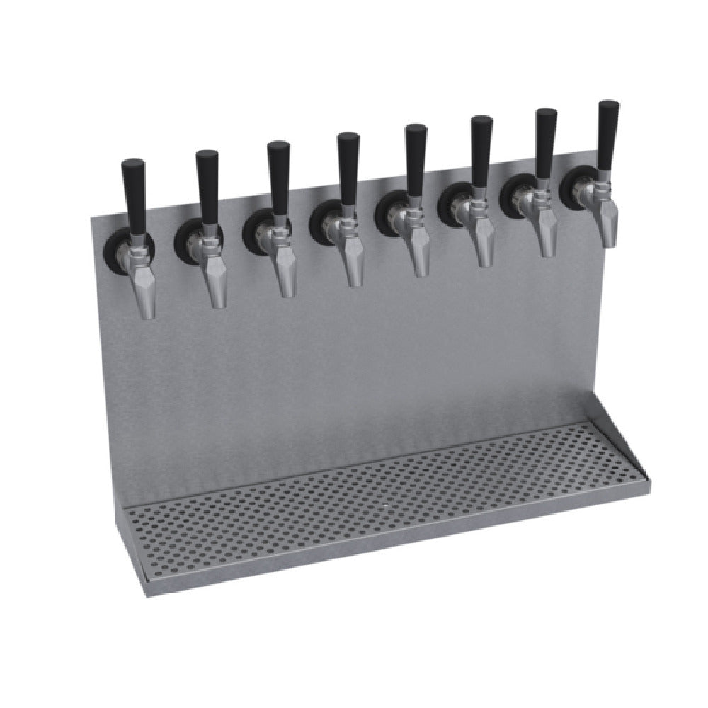 The Krowne KWMDT-8S Krowne Wall Mounted Drip Tray is a specialized solution designed for establishments with diverse beverage dispensing needs, accommodating up to eight faucets. This product is precision-engineered with a brushed stainless steel finish, ensuring durability and an aesthetically pleasing appearance that complements modern décor. Measuring an overall length of 24 inches, it provides ample space for efficient drip management, making it ideal for high-traffic environments like bars, restaurants, and breweries. Notably, the KWMDT-8S is not glycol cooled, which caters to environments where this feature is unnecessary or where different cooling methods are preferred. While the drip tray supports eight faucets, it's important to note that handles and faucets are not included, offering flexibility for users to customize according to their specific operational needs. This design adaptability makes it suitable for various market segments within the beverage dispensing industry, allowing businesses to tailor installations to their precise specifications. With its robust construction and strategic design features, the Krowne KWMDT-8S offers a practical and customizable solution for efficient and clean beverage dispensing operations.