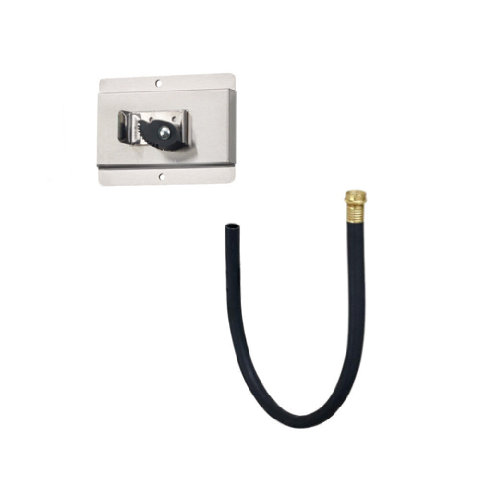 The Krowne MH-5 Mop Holder accommodates a single mop, providing a streamlined solution for organized storage in janitorial and maintenance settings. Crafted from 20/300 series stainless steel, this mop holder is engineered for durability and resistance against corrosion, ensuring longevity in demanding environments. A standout feature of the Krowne MH-5 is its inclusion of a 30-inch rubber hose equipped with a 3/4-inch garden hose inlet, which adds flexibility and convenience for water supply connections. This design caters to different market segments, from small business owners seeking efficient cleaning equipment storage to large commercial facilities requiring reliable, high-quality fixtures. The stainless steel construction not only enhances its aesthetic with a sleek, professional look but also offers easy cleaning and maintenance, making it suitable for industries with stringent hygiene standards. The Krowne MH-5 Mop Holder is a practical and robust choice for any establishment aiming to optimize space and maintain cleanliness with a device that stands up to heavy use.