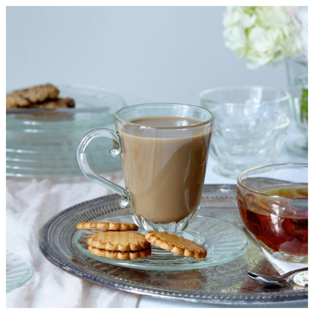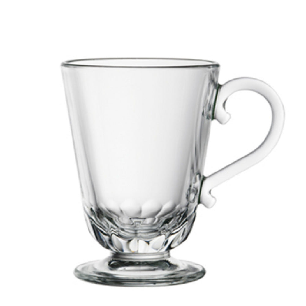 The La Rochere North America 623701 Louison Coffee Mug is a distinctive piece, standing at 4.5 inches tall and holding 8.5 ounces, tailored for coffee aficionados and glassware enthusiasts alike. Crafted with precision, this mug is machine-made using a two-part mold process to ensure consistency and quality in each piece. It is constructed from lead-free sodalime glass, making it a safe choice for everyday use. Its transparent clarity enhances the visual appeal of beverages, adding a touch of elegance to any setting. The Louison Coffee Mug is both sturdy and durable, promising longevity and resilience through regular use. Its dishwasher-safe feature offers convenience, catering to fast-paced lifestyles and reducing the hassle of manual cleaning. Packaged in sets of six, this product is perfect for both individual consumers looking to expand their home collection and businesses in the hospitality industry seeking reliable and aesthetically pleasing glassware. Whether for a cozy home kitchen or a bustling café, the La Rochere Louison Coffee Mug stands out as a versatile and practical choice, balancing traditional craftsmanship with modern utility.
