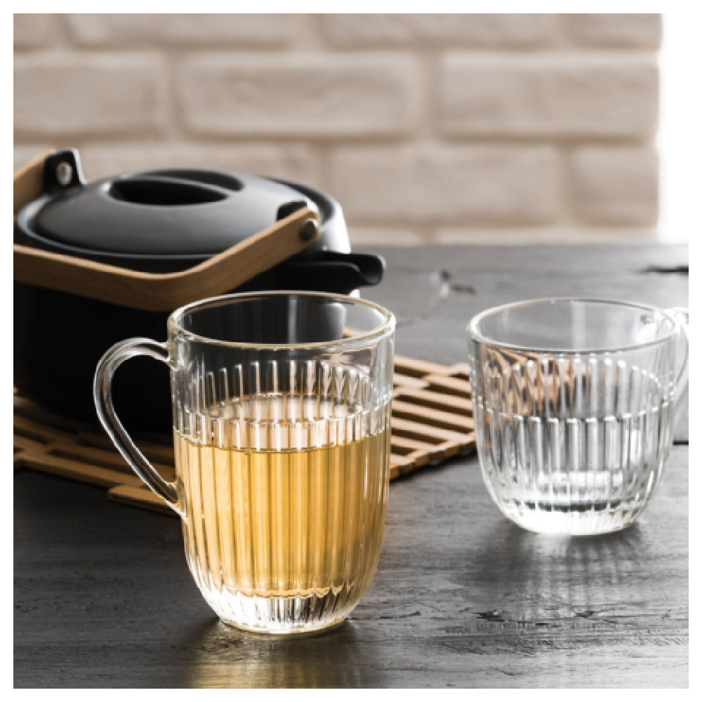 The La Rochere North America-631301-Ouessant Coffee Mug stands 4.5 inches high and holds 13.5 ounces, making it a practical and elegant choice for coffee aficionados and casual drinkers alike. Crafted from lead-free sodalime glass, this mug is clear, sturdy, and durable, ensuring a long lifespan even with frequent use. The machine-made construction in a two-part mold process guarantees consistency and high quality across each piece. It is dishwasher safe, providing convenience for busy households or commercial settings where time efficiency is crucial. With six mugs per pack, it is an ideal choice for both small and large gatherings, offering uniformity and elegance on any table setting. The design and craftsmanship of the Ouessant Coffee Mug make it suitable for various market segments, from home use to hospitality and restaurant industries, where durability and ease of maintenance are paramount. This mug's combination of practicality and aesthetic appeal underscore its unique value proposition, particularly in environments that demand reliable, high-quality glassware solutions. The La Rochere North America-631301-Ouessant Coffee Mug is a testament to fine craftsmanship and thoughtful design, tailored to meet the needs of diverse consumers who value both functionality and style in their everyday beverage experience.