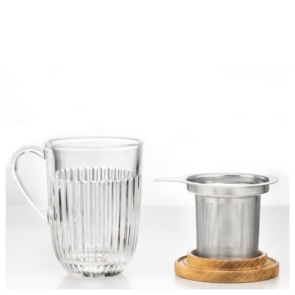 La Rochere North America-640401 Ouessant Tea Infuser Mug is a precisely crafted piece of drinkware offering a perfect blend of functionality and durability. Standing at 4.5 inches high, this tea infuser mug holds up to 13.5 ounces of your favorite tea blends. It is made from clear, lead-free sodalime glass, ensuring a safe and clean drinking experience. Utilizing a machine-made, two part-mold process, this mug exemplifies sturdy construction and reliable performance over time. The design is not only elegant but also highly durable, making it suitable for both casual home use and professional settings. With its dishwasher-safe feature, maintaining the mug’s pristine condition is hassle-free, adding to its appeal for busy individuals and establishments. Ideal for tea enthusiasts, cafes, and restaurants, the La Rochere North America-640401 Ouessant Tea Infuser Mug seamlessly combines style with practicality, making it a valuable addition for anyone seeking quality and sophistication in beverage service.