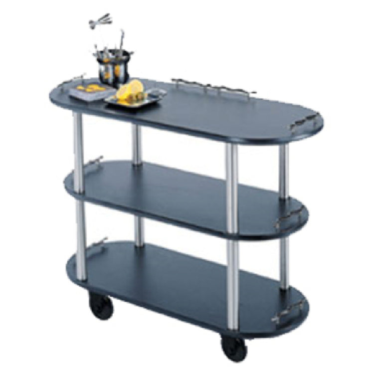 The Lakeside 36200_MAHOGANY Service Cart is a versatile and durable solution, ideal for various industry segments requiring efficient mobility and organization. Measuring 16"D x 42-1/2"W x 35-1/4"H, this service cart is designed with three open shelves, providing ample storage space for catering supplies, maintenance tools, or hospitality essentials. Its high-impact edge molding ensures enhanced durability, making it suitable for rigorous, everyday use. The cart features 1-1/2" steel tube legs, offering robust support and stability, while the 4" swivel casters enable smooth and effortless maneuverability, even in tight spaces. Proudly made in the USA, this service cart replaces the Geneva # 36200 model, reflecting Lakeside Manufacturing's commitment to quality and innovation. The rich mahogany finish adds a touch of elegance, making it a stylish choice for upscale environments. Whether utilized in hotel lobbies, conference centers, or food service operations, the Lakeside 36200_MAHOGANY Service Cart caters to diverse needs with its blend of functionality, aesthetics, and reliability.