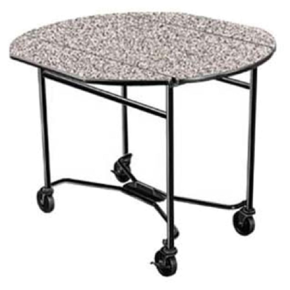The Lakeside 412 Room Service Table Drop-leaf Round Top is a meticulously designed furniture piece, ideal for the hospitality industry. With a 40-inch diameter, this round table provides ample space for serving, while its drop-leaf feature allows for versatility in use and easy storage, reducing its width to 22-1/4 inches with the leaves down. Standing at a height of 30 inches, it offers a comfortable dining experience. The table's top is crafted with a durable plastic laminate, ensuring a robust and easy-to-clean surface that can withstand frequent use in room service settings. Manufactured in the USA, the Lakeside 412 Room Service Table emphasizes quality and craftsmanship, catering to the needs of hotels and resorts that prioritize functional and reliable service equipment. Its thoughtful design is perfect for venues that require flexible furniture solutions without sacrificing aesthetic appeal. The drop-leaf mechanism allows for seamless adaptability to various room sizes and service scenarios, making it a practical choice for settings where space efficiency is paramount. This table's combination of durability, practicality, and elegant design positions it as a valuable asset in the hospitality industry's room service operations.