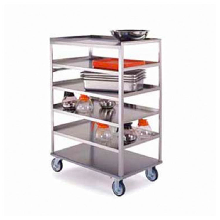 The Lakeside 448 Open Tray Truck is a versatile solution for facilities requiring efficient transport and storage of various items. Featuring six shelves with a generous shelf size of 35"W x 21"D, it is designed to accommodate a range of storage needs, with three edges up and one down for secure placement of items. Its 7-1/8" clearance between shelves allows for easy access and optimal organization. Constructed from durable stainless steel, this tray truck boasts a robust 500 lb. capacity, ensuring resilience and reliability in demanding environments. Equipped with a convenient push handle, it offers enhanced maneuverability, making it ideal for use in healthcare settings, hospitality, and food service industries. This tray truck's stainless steel construction not only provides longevity but also offers an easy-to-clean surface, maintaining high standards of hygiene. Proudly made in the USA, the Lakeside 448 Open Tray Truck combines functionality and durability, catering to a diverse range of professional environments where efficiency and dependability are paramount.