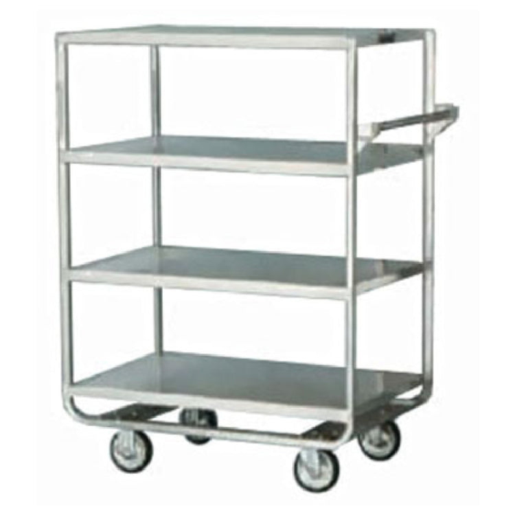 The Lakeside 561 Open Tray Truck is a meticulously designed piece of equipment, featuring four sturdy shelves with dimensions of 21" x 49". This versatile truck caters to diverse industry needs with its robust construction, ensuring durability and reliability. Engineered with three edges up and one edge down, it provides a secure platform for transporting various items, reducing the risk of spillage during transit. The 11" shelf clearance enhances its capability to accommodate larger items, making it a practical choice for environments requiring efficient material handling. Constructed from high-quality stainless steel, the truck supports a substantial load capacity of up to 700 lbs, offering exceptional strength for heavy-duty usage. A thoughtfully integrated push handle boosts maneuverability, facilitating smooth navigation across different workspaces. Proudly made in the USA, the Lakeside 561 Open Tray Truck adheres to NSF standards, underscoring its commitment to quality and safety. This open tray truck is ideal for industries such as hospitality, healthcare, and food service, where transporting large quantities of goods efficiently is paramount. Its design and functionality make it a valuable tool for enhancing operational productivity and ensuring seamless material flow within professional settings.