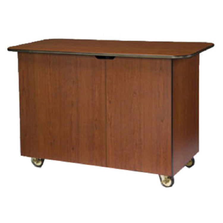 The Lakeside 68105 Service Cart is an enclosed unit offering substantial utility with its dimensions of 25-1/2"D x 57-1/2"W x 36-3/4"H overall, presenting a spacious 47"D interior. Designed with two compartments, this cart features one adjustable shelf on the right and one on the left, catering to varied storage needs in professional environments. Its laminate construction is enhanced with high-impact edge trim, ensuring durability and aesthetic appeal. The hinged doors provide secure storage while facilitating easy access to contents. Equipped with 4" swivel casters, the service cart is highly mobile, allowing for smooth maneuverability across different surfaces. This product is proudly made in the USA and is crafted to replace the Geneva #68105 model. The Lakeside 68105 Service Cart is suitable for multiple industry segments, including hospitality, healthcare, and food service, where robust, reliable, and adaptable storage solutions are essential. Its thoughtful design and quality construction make it a practical and versatile choice for professionals seeking to enhance operational efficiency with a reliable service cart.
