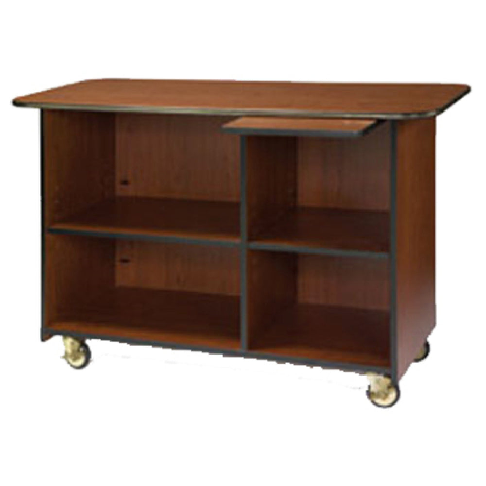 The Lakeside 68112 Service Cart is an enclosed unit designed to meet the diverse needs of various industries requiring mobile storage and transport solutions. Measuring 25-1/2"D x 57-1/2"W x 36-3/4"H overall, it provides ample space with a 47"D interior, ensuring sufficient storage capacity. This cart features two compartments with one right and one left adjustable shelf, allowing for customizable storage configurations to accommodate different items. Additionally, it includes a pull-out shelf on the top right, enhancing accessibility and organization. The high-impact edge trim and laminate construction ensure durability and resistance to wear, making it suitable for demanding environments. Equipped with 4" swivel casters, this cart offers smooth and effortless mobility, essential for efficient workflow in busy settings. Proudly made in the USA, the Lakeside 68112 Service Cart combines functionality with quality craftsmanship, replacing the previous Geneva #68112 model to deliver improved performance and versatility. This cart serves as a reliable and adaptable asset for various commercial settings, including hospitality, healthcare, and institutional facilities, providing a practical solution for transporting and storing supplies, equipment, or other essential items while maintaining a professional appearance.