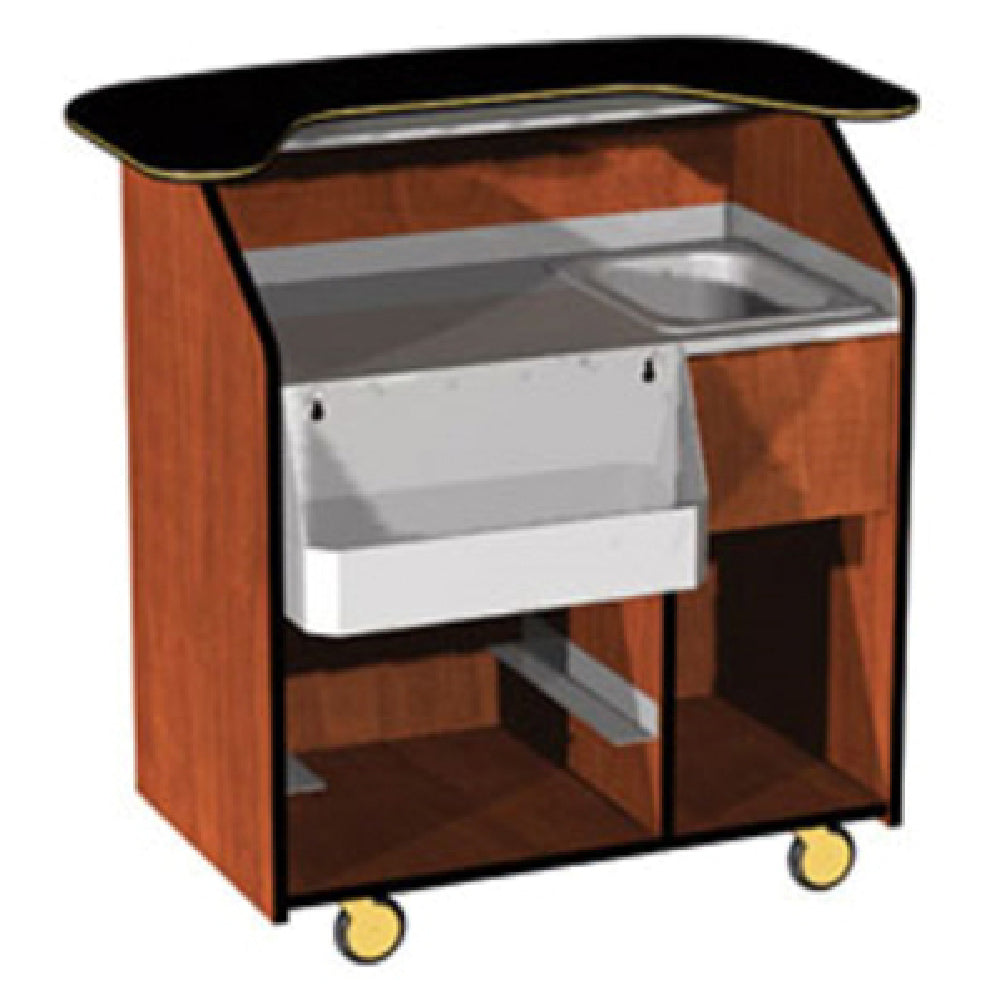 The Lakeside 68400 Portable Bar is a meticulously engineered piece designed for both efficiency and style in hospitality environments. With dimensions of 33"D x 44-1/2"W x 43-1/2"H, this bar offers ample space and functionality. Constructed with durable wood laminate, it features a sleek stainless steel shelf for added durability and elegance. The inclusion of a 40-lb capacity ice bin and a removable 7-bottle speed rail enhances its utility, catering to the fast-paced demands of beverage service. Adjustable shelves provide versatile storage solutions, accommodating various bar accessories. High-impact edge molding ensures longevity, capable of withstanding the rigors of frequent use. The waterproof black laminate top not only adds to the bar's aesthetic appeal but also simplifies cleaning and maintenance. Equipped with 4" swivel casters, the bar promises effortless mobility, facilitating seamless service transitions. Proudly made in the USA, the Lakeside 68400 Portable Bar replaces the Geneva # 68400, signifying a commitment to quality and innovation. This portable bar is aptly suited for a range of settings, from upscale events to casual gatherings, providing a reliable beverage service solution that combines practicality with sophisticated design.