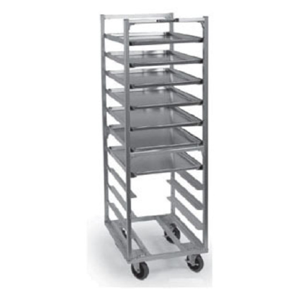 The Lakeside 8547 Roll-In Cooler Rack 64"H Open Sides is a versatile and efficient storage solution, designed for seamless integration in commercial kitchens and food service environments. Standing at 64 inches high, this cooler rack features open sides, accommodating up to 34 full-size pans measuring 18" x 26" or 68 half-size pans. Each pan slot is precisely spaced at 1-1/2 inches, ensuring optimal airflow and easy access. The rack's channel ledge construction enhances stability and durability, while its welded aluminum build guarantees long-lasting, lightweight support. Specifically crafted to fit low type coolers, this product effortlessly meets the varied demands of food service operations, from restaurants and cafes to catering services. Proudly made in the USA, it adheres to NSF standards, ensuring compliance with public health and safety regulations. The Lakeside 8547 Roll-In Cooler Rack's combination of robust construction and thoughtful design provides a reliable, high-capacity storage solution, perfect for maintaining efficient kitchen workflows and maximizing cooler space utilization.