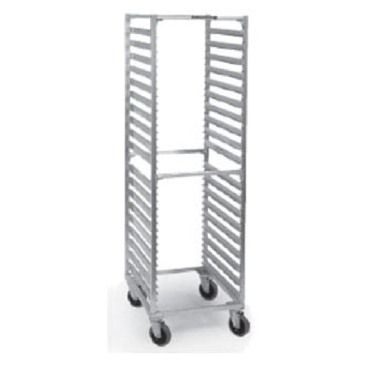 The Lakeside 8559 Roll-In Cooler Rack 69"H Open Sides is engineered to optimize storage in commercial cooling environments. This versatile cooler rack is designed with open sides and boasts a substantial capacity, accommodating up to 38 full-size pans measuring 18" x 26" or 76 half-size pans, making it ideal for high-volume food service operations. With channel ledges spaced at 1-1/2" intervals, the rack provides secure and stable support for stored items, ensuring efficient use of space while maintaining easy access. Constructed from welded aluminum, this cooler rack offers durability and lightweight handling, enhancing operational efficiency in demanding environments. Its compatibility with low-type coolers makes it a flexible choice for a variety of settings, whether in restaurants, bakeries, or institutional kitchens. Proudly made in the USA, the Lakeside 8559 Roll-In Cooler Rack is NSF certified, affirming its compliance with rigorous public health and safety standards. This rack's robust design and practical features make it a valuable asset for professionals seeking reliable and efficient storage solutions in the food service industry.