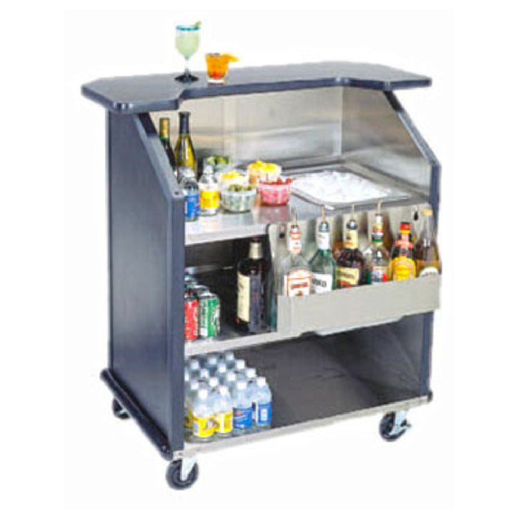 The Lakeside 884 Portable Bar 43" Long Waterproof Top is a versatile and durable solution for hospitality and event industries that demand mobility and efficiency. Its design features a waterproof top, ensuring resilience and easy maintenance in various environments. The bar's exterior is constructed with laminate over stainless steel, providing a sleek appearance while maintaining robustness. Inside, a stainless steel work shelf and an inner cabinet offer ample workspace and storage, enhancing operational efficiency. The bar is equipped with a 40 lb. capacity ice bin featuring a drain - a practical component for bartenders who need quick access to ice. Additionally, it includes a 7-bottle speed rail, allowing for organized and accessible bottle storage. Mobility is a key feature, with all-swivel 5” non-marking Lake-Glide® casters, two of which come with brakes, ensuring easy transport and stability when needed. Proudly made in the USA, the Lakeside 884 Portable Bar caters to various market segments by combining functionality with stylish design, making it a valuable asset for catering services, hotels, and event venues looking to enhance their beverage service capabilities with a focus on quality and reliability.