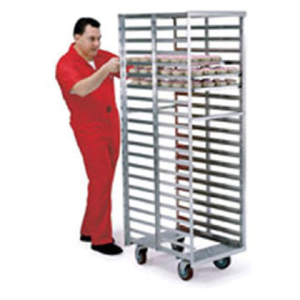 The Lakeside 8900 Extreme Duty Roll-In Cooler Rack is an open-frame storage solution specifically engineered for high-capacity environments. With the ability to accommodate either 20 full-size sheet pans measuring 18" x 26" or 40 half-size pans, it meets the demanding needs of commercial kitchens and bakeries. The rack features angle ledges with 1-1/4" spacing, providing a secure and organized storage area for your baking sheets. Constructed entirely from stainless steel, this cooler rack offers exceptional durability and resistance to corrosion, ensuring longevity even in rigorous settings. End loading design facilitates easy access and efficient loading and unloading of pans, optimizing workflow in busy kitchens. Its 5" swivel casters add mobility, allowing for seamless transport across your facility. Proudly made in the USA, the Lakeside 8900 stands out for its robust construction and functional design, making it a dependable choice for food service operations that require reliable and efficient pan storage solutions. Whether in a bustling restaurant environment or a high-volume commercial bakery, this cooler rack's combination of capacity, durability, and mobility underscores its unique value in the food service industry.