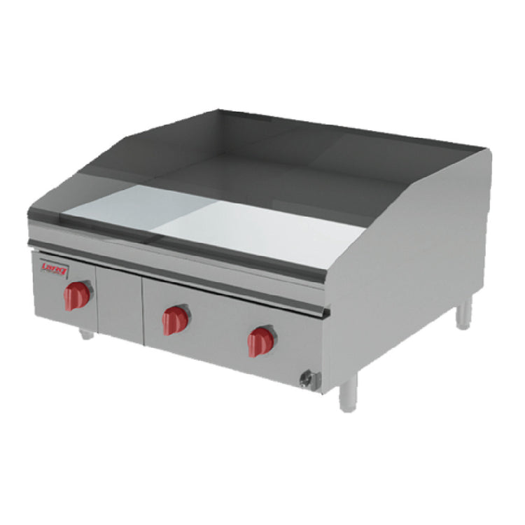 The Lang 136ZTDC LG Heavy Duty Griddle Electric 36" W X 30" D Cooking Surface is a robust and versatile appliance designed for demanding culinary environments. This electric griddle boasts a substantial 36-inch width and 30-inch depth, providing a generous cooking surface that can accommodate high-volume cooking operations. A standout feature is its 1-inch thick smooth polished chrome griddle plate, which ensures even heat distribution and durability. The griddle is equipped with a 3-cook zone system, each controlled by Accu-Temp™ snap-action thermostats, allowing precise temperature management within every 12-inch section of the plate. The stainless steel exterior adds to its aesthetic appeal and durability, making it a resilient choice for long-term use in commercial kitchens. Supported by sturdy 4-inch legs, the griddle is elevated for ease of cleaning underneath. With ETL and ETL-Sanitation certifications, it meets stringent safety and sanitation standards, making it a reliable kitchen asset. This griddle is ideally suited for restaurants, catering businesses, and other food service establishments looking for efficient and consistent cooking solutions. Its combination of advanced temperature control and a large, durable cooking surface makes the Lang 136ZTDC a valuable addition to any professional kitchen.