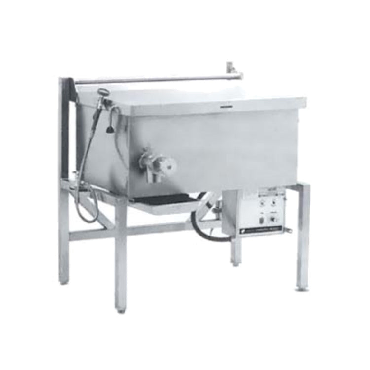 The Legion CS28-5 Combi-Pan Tilting Skillet - Electric 15.2-gallon is a versatile and highly efficient piece of equipment designed for a variety of culinary applications. This electric skillet has a substantial 15.2-gallon capacity, making it suitable for large-scale operations and commercial kitchens that require high-volume cooking. The pan features a precise 10-degree tilting mechanism, which is essential for easy pouring and handling of food, minimizing spills and enhancing operational efficiency. With an adjustable thermostat, it allows for precise temperature control, catering to a wide range of cooking techniques. The skillet includes a 1-1/2 inch draw-off valve, facilitating the easy removal of liquids without disturbing the cooked food. Its stainless steel construction, including a pan and open frame, ensures durability and longevity, while the stainless steel lid is equipped with an actuator-assisted counterbalance for ease of use. The flanged front feet and bullet back feet provide stability and support, ensuring safety during operation. With an electric output of 11.8kW, this skillet delivers powerful performance, making it an essential tool for professional kitchens in restaurants, catering services, and institutional dining facilities, where reliability and efficiency are paramount.