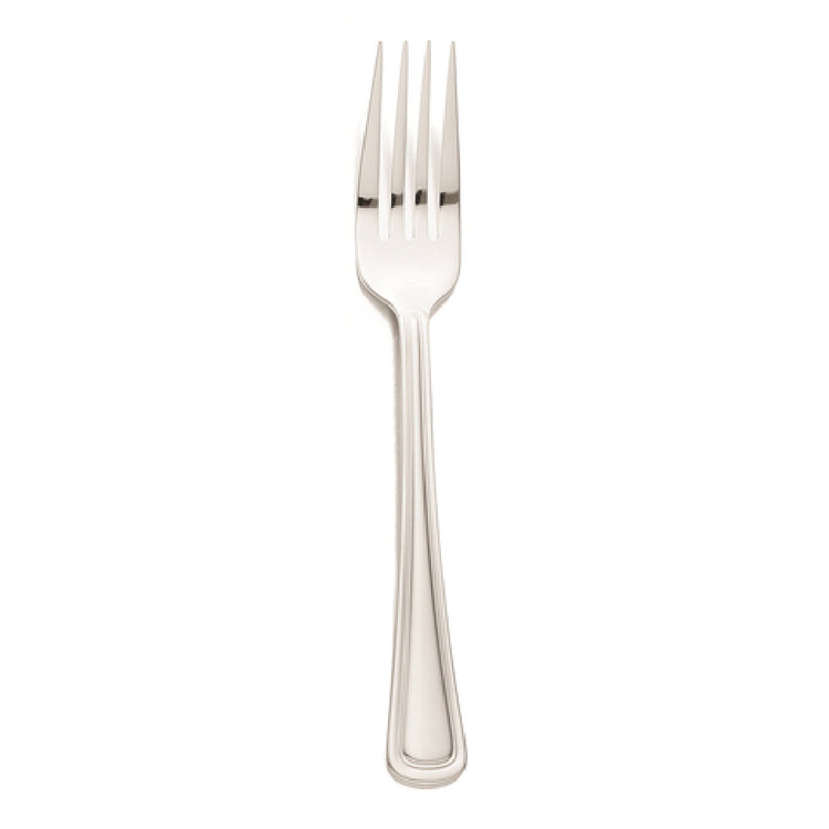 The Libbey 101 039 - formerly known as World Tableware - European Dinner Fork is a meticulously crafted utensil measuring 8 inches, constructed from superior 18/8 stainless steel. It features the Classic Rim II design, known for its timeless elegance and durability. Each case contains 36 of these exquisite forks, making them a valuable addition to any restaurant, hotel, or catering service aiming for a sophisticated dining ambiance. The use of 18/8 stainless steel, composed of 18% chromium and 8% nickel, ensures exceptional resistance to rust and corrosion, while also providing a lustrous finish that withstands the rigors of commercial use. This fork is ideal for establishments looking to enhance their table setting with a touch of European-inspired refinement. Its substantial weight and balanced design cater to a diverse range of dining environments, from upscale eateries to banquet halls, offering both aesthetic appeal and practical functionality. The Libbey 101 039 fork is not just a utensil; it is a statement of quality and style, resonating well with venues that prioritize a high standard of dining experience.