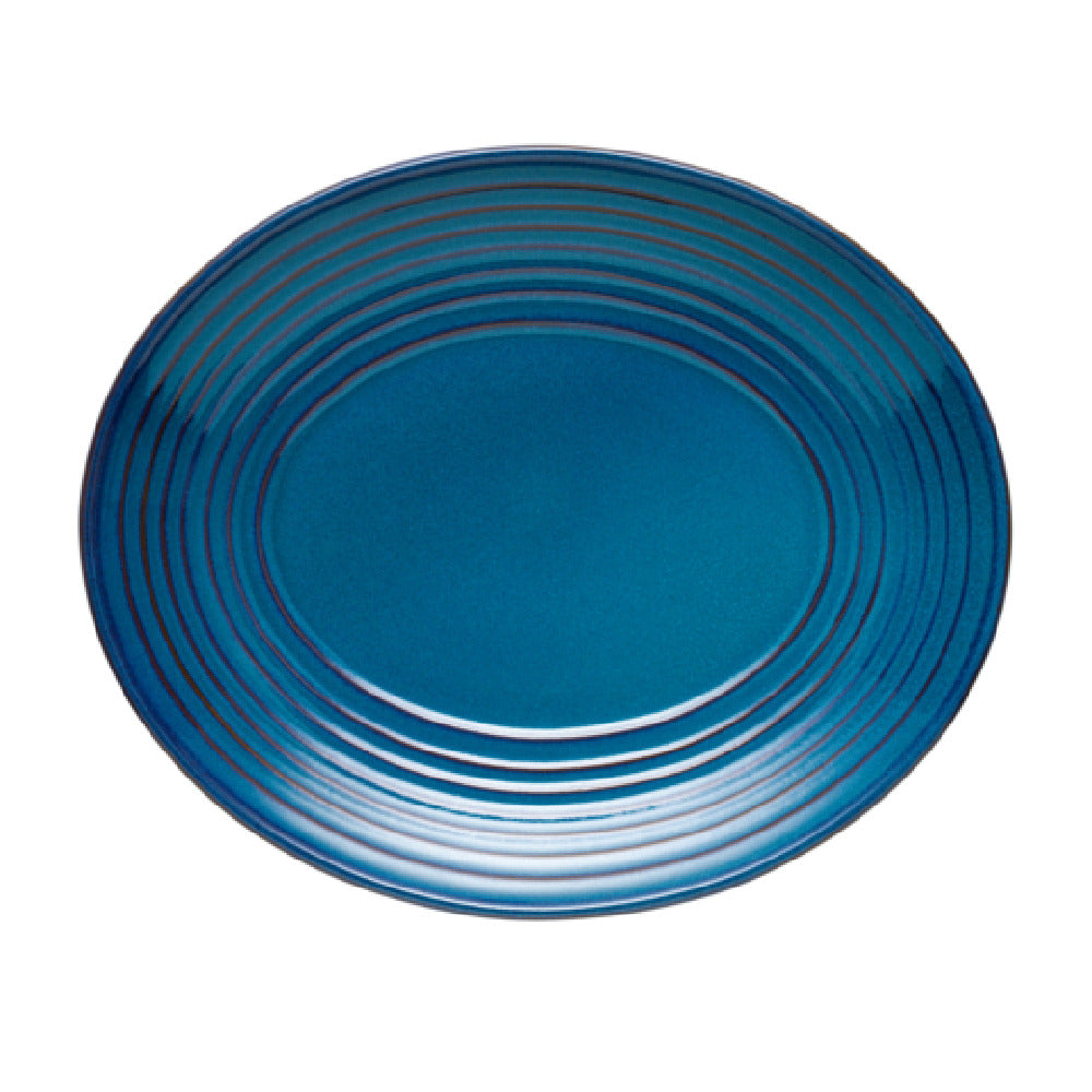 The Libbey 109761 Platter is an elegantly designed oval dish that measures 12-1/8 inches by 10-1/8 inches by 1-1/2 inches in height. Crafted in terracotta with a Canyonlands Blue finish, this platter adds a touch of sophistication and rustic charm to any dining setting. Each case contains 12 of these versatile platters, making them a practical choice for both commercial and home use. The terracotta material provides excellent durability and heat retention, ensuring that your dishes remain warm throughout the meal. The distinctive oval shape and vibrant blue color make this platter ideal for showcasing culinary creations, whether in a restaurant, catering event, or family gathering. Its generous size is perfect for serving a variety of entrees, appetizers, or desserts, while the slightly raised edges help contain sauces and garnishes, keeping them neatly in place. The Libbey 109761 Platter's combination of aesthetic appeal and functional design makes it a valuable addition to any food service establishment seeking to elevate their presentation standards.