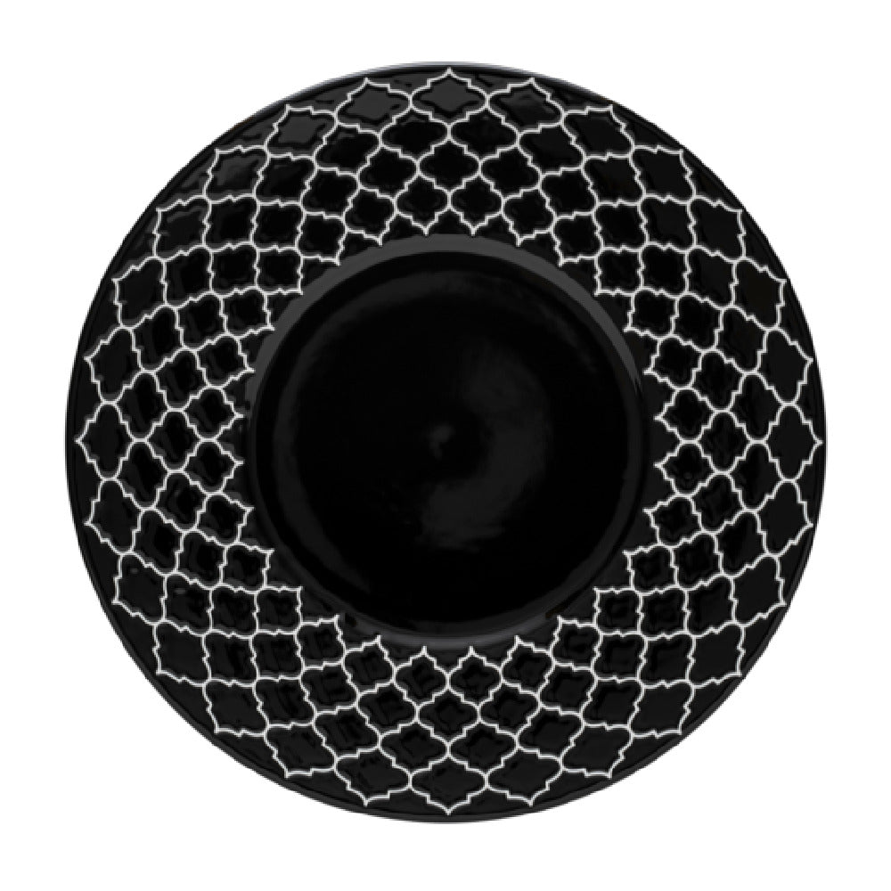 The Libbey 109975 Plate 11-3/4" With Rim is a sophisticated dining essential, designed to meet the diverse needs of the food service industry. This plate features a diameter of 11-3/4 inches and boasts a subtle rim, enhancing its functionality and aesthetic appeal. Its sleek black combo finish, known as Samira, adds a touch of elegance, making it suitable for upscale dining settings as well as casual eateries. With a height of 1/8 inch, this plate offers a modern profile that is both stylish and practical. Sold in cases of 12, this product is ideal for restaurant owners looking to maintain a consistent and professional table setting. Packed by Cs, the Libbey 109975 plate is crafted with attention to quality and durability, ensuring it withstands the rigors of busy dining environments. Its design seamlessly integrates with a variety of tableware, providing versatility across different meal presentations. This plate is an exemplary choice for those seeking a balance of form and function, catering to distinct market segments ranging from high-end restaurants to hospitality services. With its refined appearance and practical design, the Libbey 109975 Plate is a valuable addition to any food service operation.