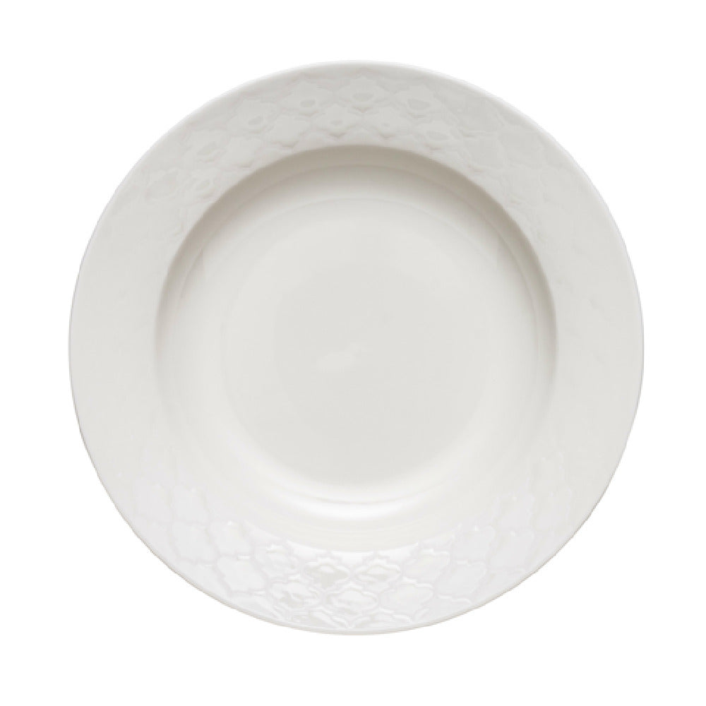 The Libbey 110011 Soup Bowl 9" Dia. 10 Oz. is a meticulously designed piece of dinnerware that combines functionality with elegant simplicity. Featuring a 9-inch diameter, this bowl is perfectly sized for serving a variety of soups, providing ample space with its 10-ounce capacity to accommodate hearty portions. The bowl's rimmed design adds a touch of classic sophistication, while its white color ensures seamless integration into any dining setting, be it casual or formal. Designed under the Samira line, the bowl stands at a height of 1-5/8 inches, offering a comfortable depth for diverse culinary presentations. Available in a case pack of 12, it is an ideal choice for both restaurant settings and home dining collections, providing versatility and practicality. The Libbey 110011 Soup Bowl is crafted to meet the needs of various market segments within the food service industry, from upscale establishments seeking elegant presentation options to busy cafeterias requiring durable and easy-to-clean dinnerware. Its thoughtful construction and aesthetic appeal make it a valuable addition to any dining experience, catering to a wide range of customer preferences and enhancing the overall dining atmosphere.
